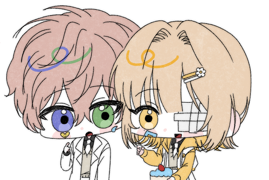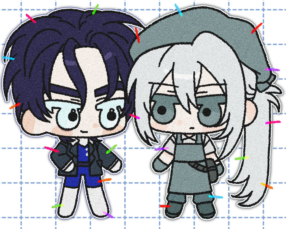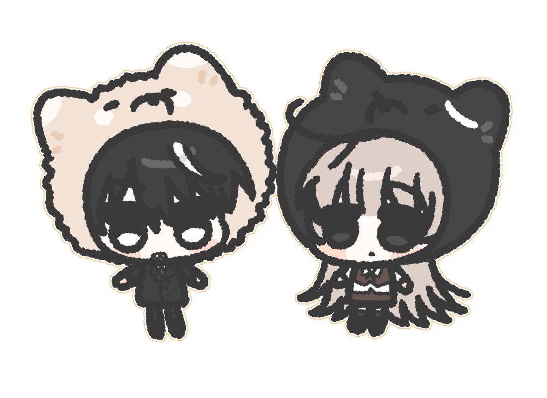 1. 캐릭터 자료 : (백발x백발 페어의 경우 유령 두건 색을 최대 2가지까지 적어주시면 색입혀 진행합니다!)